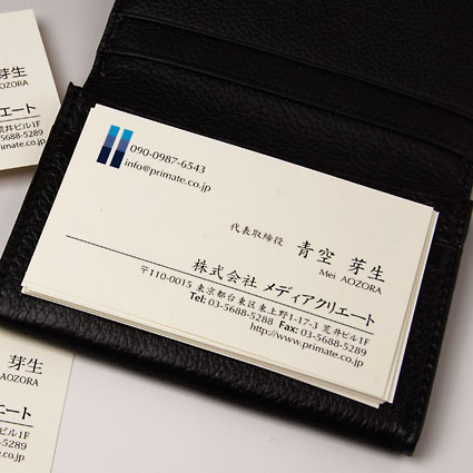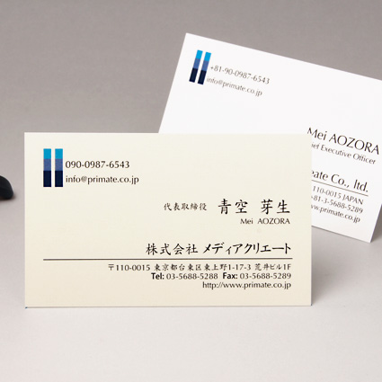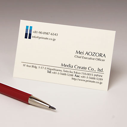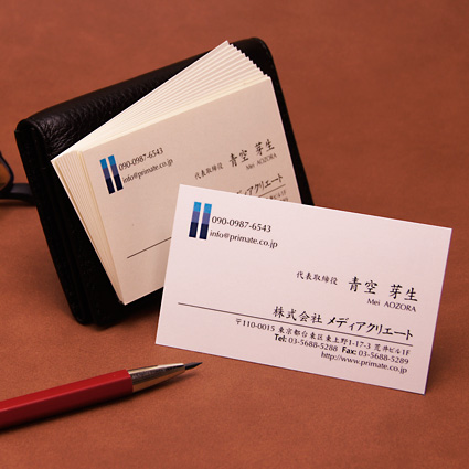 | 文字名刺にワンポイント加えたカラー名刺。ワンポイントの存在感で好印象。ビジネスシーンでお使いいただくには最適です。 |
