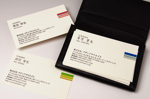 | 文字名刺にワンポイント加えたカラー名刺。ワンポイントの存在感で好印象。ビジネスシーンでお使いいただくには最適です。 |