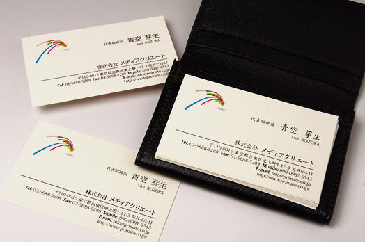 | 文字名刺にワンポイント加えたカラー名刺。ワンポイントの存在感で好印象。ビジネスシーンでお使いいただくには最適です。 |