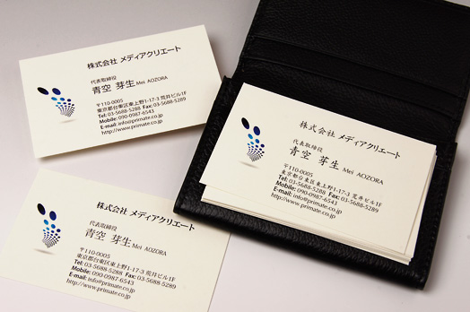 | 文字名刺にワンポイント加えたカラー名刺。ワンポイントの存在感で好印象。ビジネスシーンでお使いいただくには最適です。 |